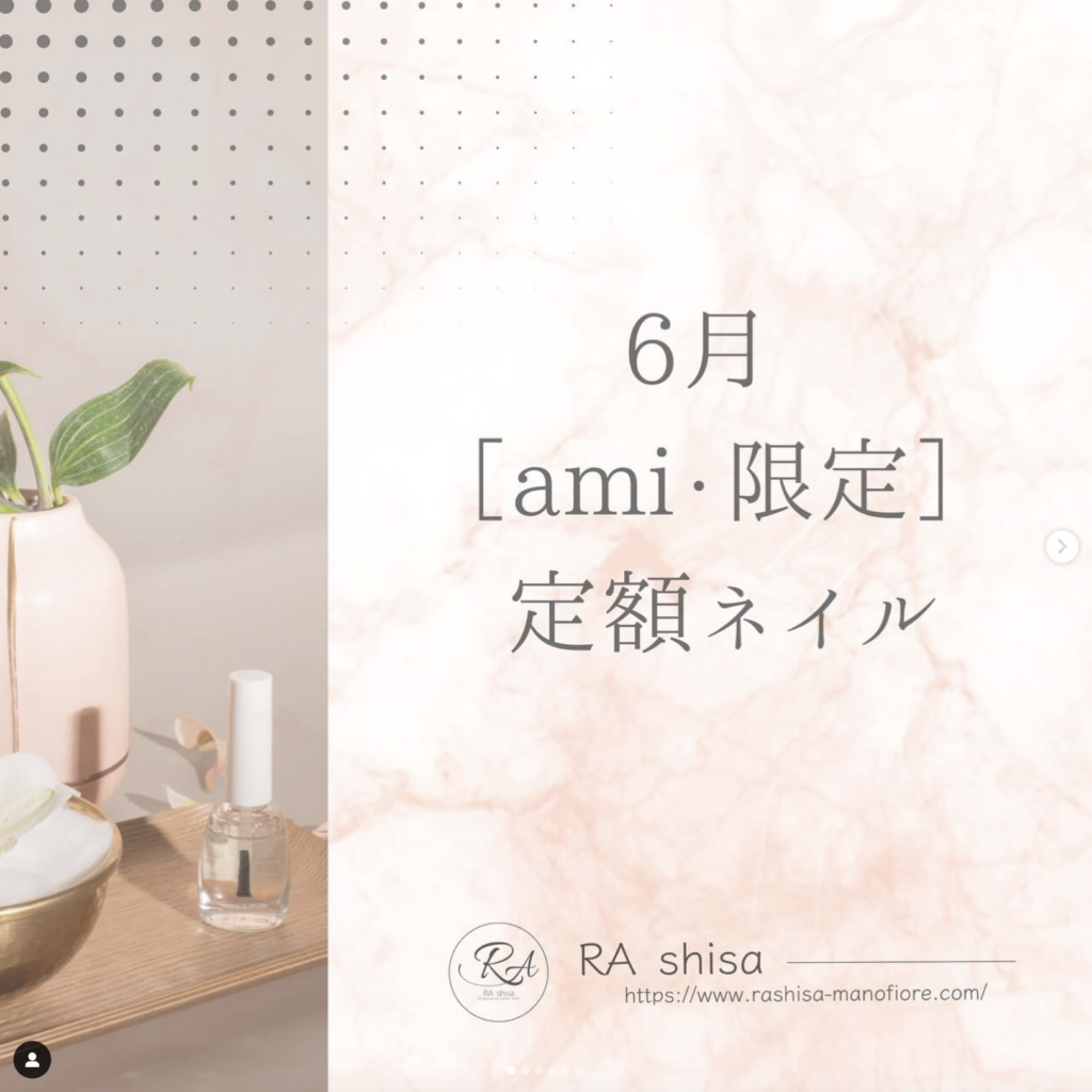 6月【Ami・限定】定額ネイルあみ 2024.05.31 ブログ ・【10種類から選べる今月の定額ネイル/オフ込み】¥ 5,900(ご新規様)¥ 6,900(2回目以降御来店の方).こちらは、6月の定額ネイルの《ami限定デザイン》になります。10種類のうち5種類は全スタッフ共通のデザインとなり他5種類はスタッフによって異なるデザインでのご案内です。スタッフ別のデザインご希望の場合は『担当スタッフのご指名』をお願いいたします。↓ 詳細は、クリックいただきますとインスタグラムからご覧いただけます。 Tweet Share 6月【Miyu・限定】定額ネイル 前の記事 6月【オーナー・限定】定額ネイル 次の記事