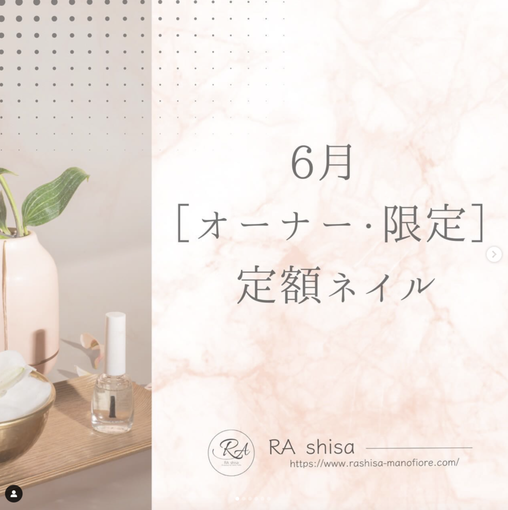 6月【オーナー・限定】定額ネイル 2024.05.31 ブログ ・【10種類から選べる今月の定額ネイル/オフ込み】¥ 5,900(ご新規様)¥ 6,900(2回目以降御来店の方).こちらは、6月の定額ネイルの《オーナー限定デザイン》になります。10種類のうち5種類は全スタッフ共通のデザインとなり他5種類はスタッフによって異なるデザインでのご案内です。スタッフ別のデザインご希望の場合は『担当スタッフのご指名』をお願いいたします。↓ 詳細は、クリックいただきますとインスタグラムからご覧いただけます。 Tweet Share 6月【Ami・限定】定額ネイルあみ 前の記事 このしりとり・・・ すべてわかった人にはなにかサービスがあるそうです。 次の記事