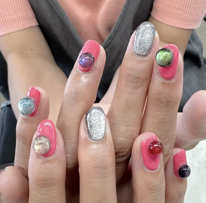 【長野市でマグネットネイルと言ったらラシサ】 2024.09.20 ブログ RA shisaの一番人気の定額ネイルは【色変更可能です!!!】ネイルの後は美容院に行って髪をピンクにされるとのことでそのピンクに合わせました。こちらのデザインは初めて「球付き」作りました(^^;この球は手作りです。お爪の上で作ります!そしてもちろん球なしも作りますよ★うるうるシルバーマグそして球の部分ももちろんマグネット!良いわ〜〜*.゜ライブ楽しんできてくださいね♬下記の画像をクリックいただきますと、インスタグラムから動画でウルウル感を詳細にご覧いただけます。 Tweet Share 【長野市でマグネットネイルと言ったらラシサ】 前の記事 〜*RA shisa 駐車場のご案内*〜 次の記事
