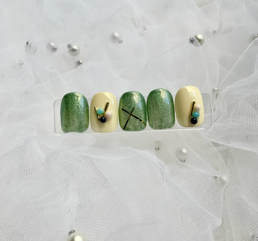 グリーンのうるマグ×クリーム色に3色団子(?)をのせました🤤🍡