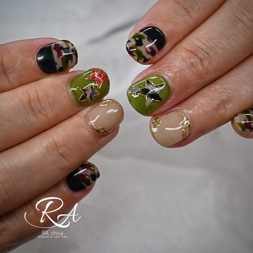 迷彩ネイル 2025.09.07 ブログ ド新人の時、お客さまの希望で作ったらアオムシの行進みたいになってしまった以来迷彩にトラウマだったのかも知れない。(お客さん爆笑しすぎ)このお話は15年近く前のお話だから時効ということでお願いします。 Tweet Share お客さまからのご依頼 前の記事 ロゴ風(logo-style) 次の記事